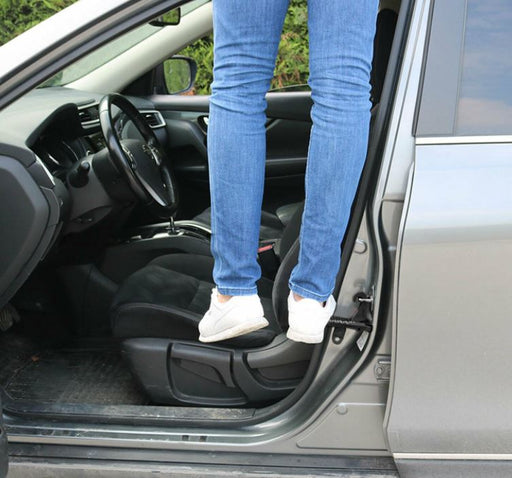 Fótstiginu er smellt í læsingarlykkjuna í hurðarfalsinu og auðveldar aðgang að toppi bílsins. Mjög sniðugt fyrir fólk með farangursbox, skíða eða h...